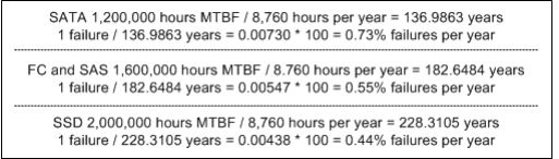 The most commonly referenced MTBF values for storage subsystem devices are for drives. SSD, SATA,