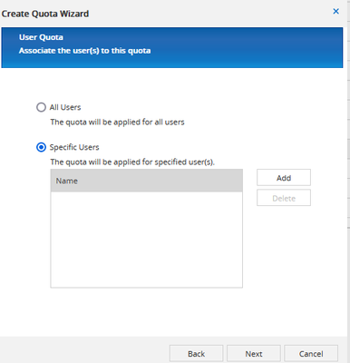 Today, we added 5 users before clicking 'Next' and 'Finish'. We noticed under the User Defined Quotas, it lists all 5 users on one line under 'User/Group'. So how is this rule being enforced?