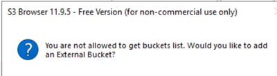 Does anyone know what happened when I failed to add a bucket on the s3 browser