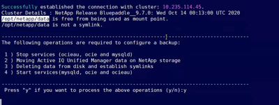 - Make sure to have the volume mounted to the Unified Manager host and have the mount path ready.