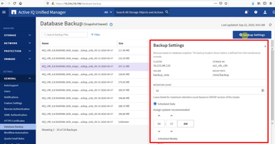 After the backup is configured, we can schedule backups for the required regular interval. Scheduled backup can be configured using Backup Settings under Database Backup. You can set a backup schedule so that Snapshot copies are created according to the schedule. The Snapshot copy records are displayed in the UI as shown in the following screenshot. You can also change the retention count for the Snapshot copies as well (Figure 6).