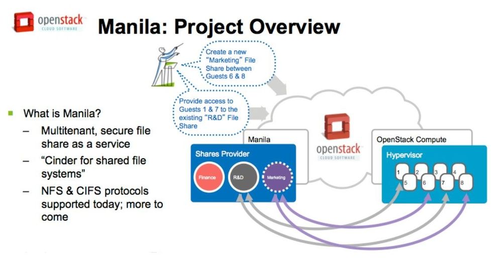 Want to learn more about Manila? Get started by checking our wiki page @ http://wiki.openstack.org/wiki/Manila or jump on IRC – we’re always hanging out in #openstack-manila and #openstack-netapp on freenode! We’ve got weekly meetings at 1500 UTC in #openstack-meeting-alt on freenode as well.