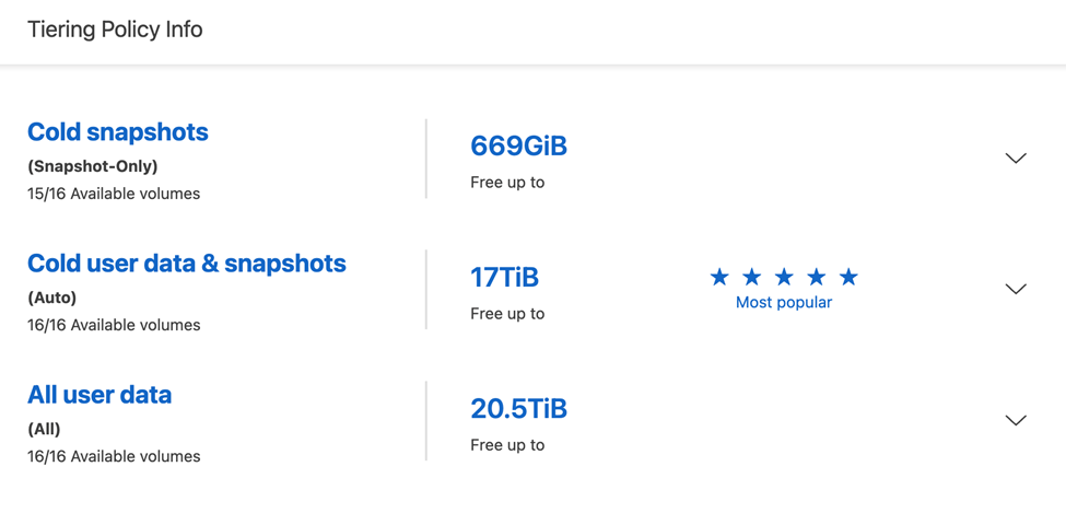 Not sure which option to choose, or how impactful it will be? BlueXP tiering will show you just how much capacity will be freed up on a given cluster with each tiering policy.