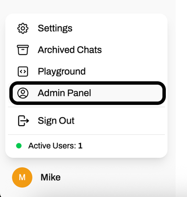 If you did not configure SSO integration in your open-webui-values.yaml file, as I did not in the preceding example, then you will need to create accounts for your users via the admin panel. To access the admin panel, click on your name in the bottom-left corner of the screen, and then click on 'Admin Panel.'